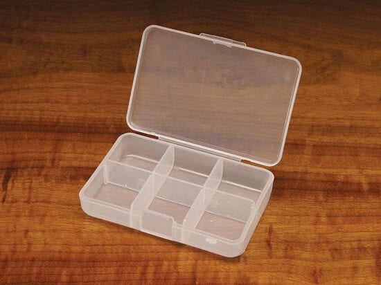 The 6 Compartment Divider Midge Box is a great way to store hooks and beads. The curved edges make your materials slide out easily.