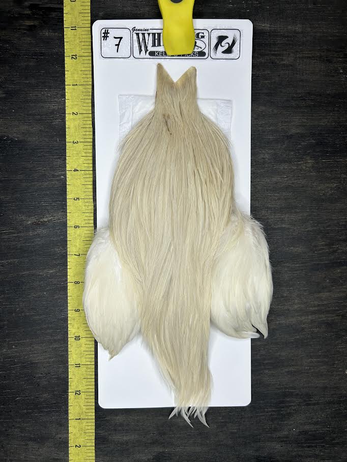 Whiting dry fly capes are the ultimate in dry fly tying. With long supple quills and incredible barb density capable of tying down to size 24 and even smaller, Whiting genetic dry fly hackle is the connoisseur’s choice for fly tying. This product line derives its heritage from the legendary Hoffman grizzly super hackle stock. Only Whiting Farms has this incredible genetic stock to offer you.