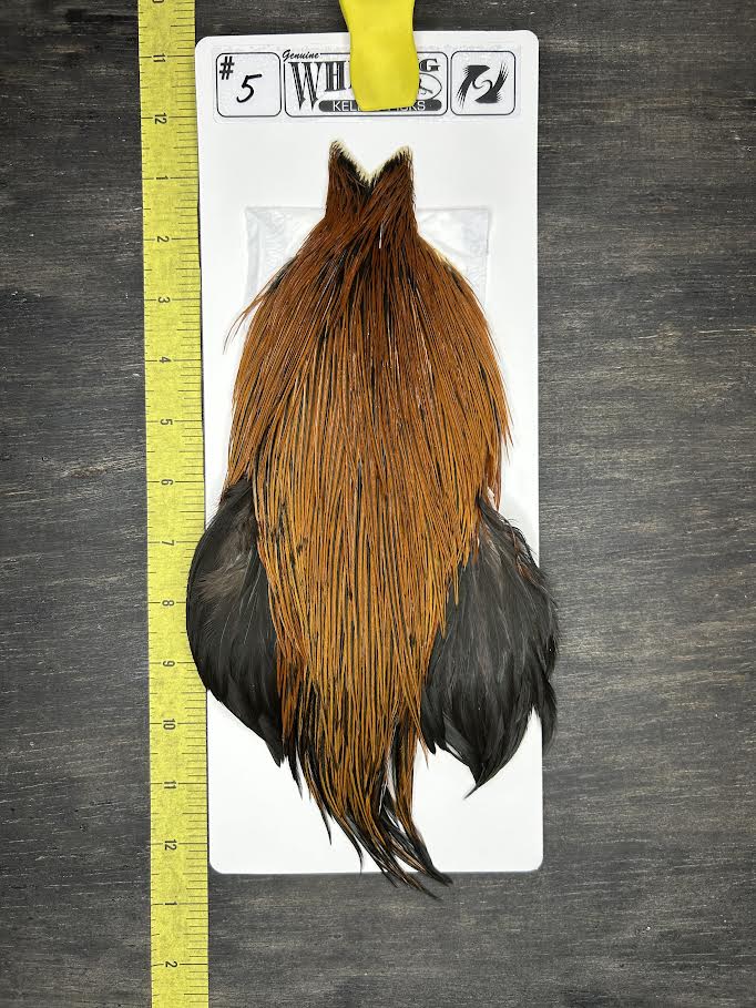 When you purchase a Whiting dry fly cape you can rest assured that you are getting the ultimate hackle for tying dry flies. With long supple quills and incredible barb density capable of tying down to size 24 and even smaller, Whiting genetic dry fly hackle is the connoisseur’s choice for fly tying. This product line derives its heritage from the legendary Hoffman grizzly super hackle stock. Only Whiting Farms has this incredible genetic stock to offer you, and the bronze grade offers superior quality at an affordable price.