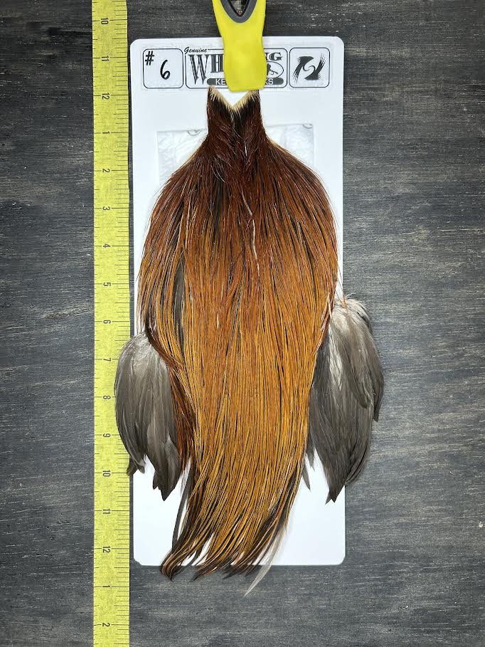 After ten years of careful study, experimentation, and refinement of the genetic selection and husbandry systems essential for these demanding hackle stocks, the feather products from Whiting Farms have risen to new levels of quality. Genetic progress has been ever accelerating and the unique environmental and nutritional requirements for realizing these genetic advances have been increasingly well defined by Dr. Tom and the exceptional staff at Whiting Farms. Purchasing a whiting dry fly cape is a privilege to the contemporary fly tyer and the result of years of hard work and experimentation.