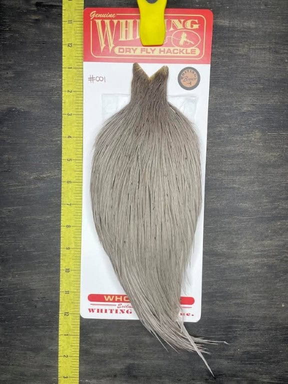 Whiting Dry Fly Cape – Bronze Grade – White dyed Medium Dun #001