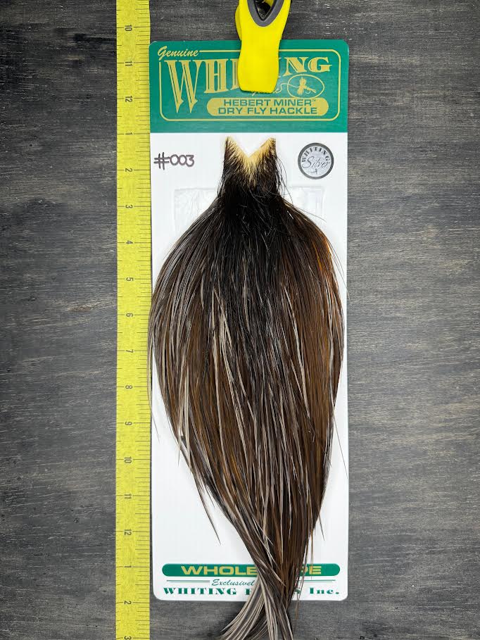 Whiting Hebert Miner Hackle is the choice of the traditional dry fly tyer. The Hebert-Miner line of fly tying feathers is best known for gorgeous natural colors such as creams, duns & browns with brassy overtones and natural sheen. This is the perfect selection for Catskill and traditional pattern fly tiers. Only Whiting Farms has the custodial rights to the legendary Hebert stock, and they have combined this with the historic Catskill stocks of Darbee and Miner to make the finest natural-toned dry fly feather available. This combination cannot be found with any other breeder.