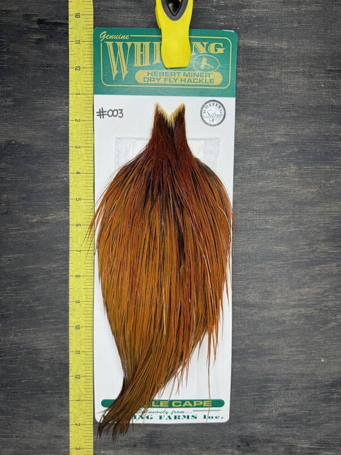 Whiting Hebert Miner Hackle is the choice of the traditional dry fly tyer. The Hebert-Miner line of fly tying feathers is best known for gorgeous natural colors such as creams, duns & browns with brassy overtones and natural sheen. This is the perfect selection for Catskill and traditional pattern fly tiers. Only Whiting Farms has the custodial rights to the legendary Hebert stock, and they have combined this with the historic Catskill stocks of Darbee and Miner to make the finest natural-toned dry fly feather available. This combination cannot be found with any other breeder.