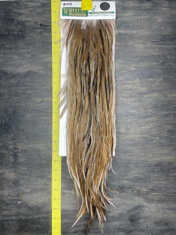 This incredible dry fly hackle began its journey in 1954 when legendary Catskill fly tier Harry Darbee generously provided Andy Miner with some of his Darbee hackle stock eggs. What resulted from this gift was a pivotal event and foundation for the future of genetic dry fly hackle. A Minnesota lawyer by profession, Andy Miner was also a meticulous, patient soul and through extensive study, experimentation, and perseverance bred a markedly better hackle rooster. In 1974 Ted Hebert of Laingsburg, Michigan obtained the best of the Miner hackle stock. For the next twenty plus years Ted Hebert continued the genetic selection as Andy Miner had taught him and further advanced the stock in pursuit of improving the hackle’s beautiful colors. In 1997 Tom Whiting, president of Whiting Farms, assumed stewardship of this incredible gene pool. Dr. Whiting’s goal is to preserve the inherent characteristics of this exceptional hackle stock while continuing the development and refinement of its qualities and unique natural colors. Whiting Hebert Miner Hackle is the product of a long and careful cultivation by several individuals, each dedicated to creating the finest dry fly hackle available.